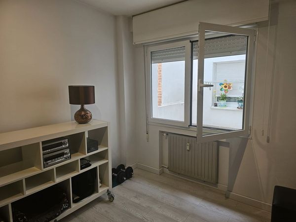 Disfruta de la luz natural en las dos habitaciones; la principal ofrece acceso directo al amplio patio de manzana orientado al sur, mientras que la secundaria cuenta con acceso a un patio de luces. El baño, aunque sin ventana, está equipado con una cómoda bañera. Las ventanas de PVC con rotura de puente térmico aseguran un excelente aislamiento y confort en cualquier época del año.